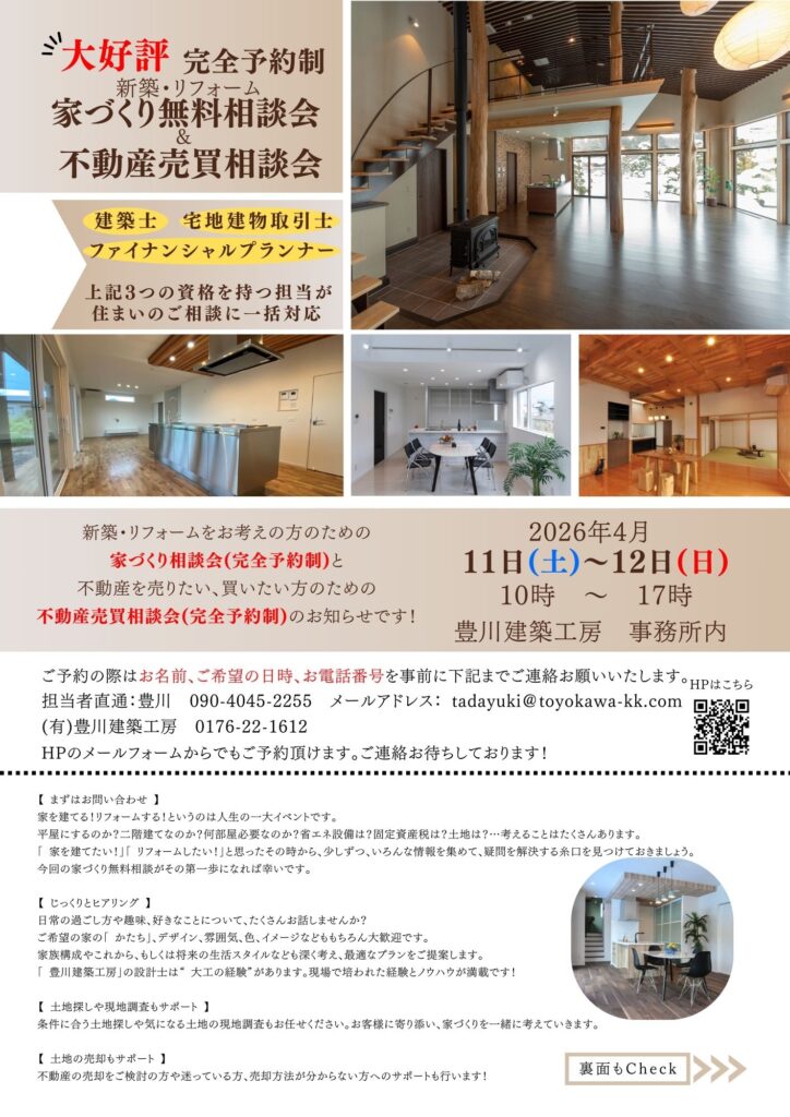 家づくり・不動産売買無料相談会2026/4/11.4/12 チラシ