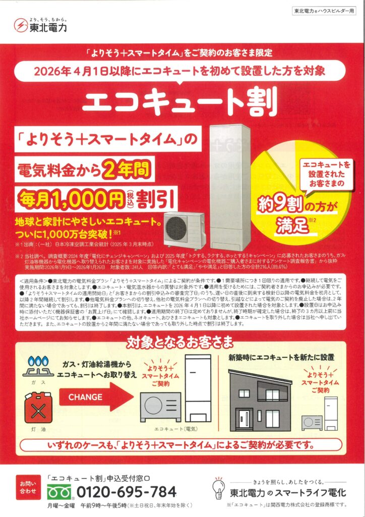 New!東北電力 エコキュート割のお知らせ
