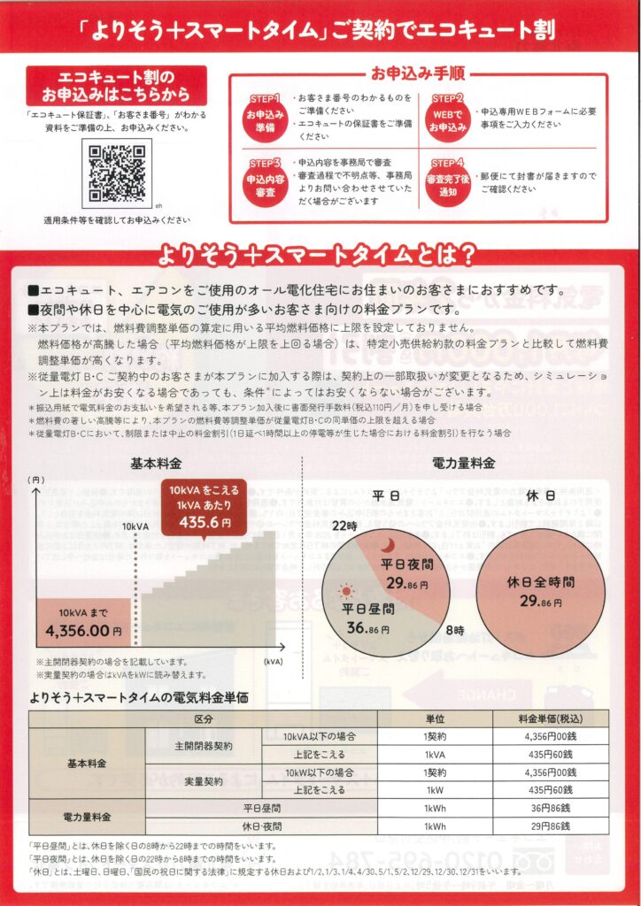 「よりそう+スマートタイム」によるご契約をいただくことでエコキュート割を活用できますので、