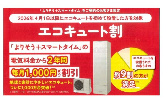 「エコキュート割」のお知らせです。